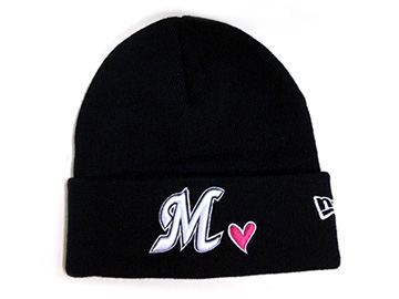 ピンクのハートがチャーミングなネイビーのニットキャップが新登場!!