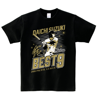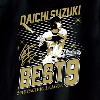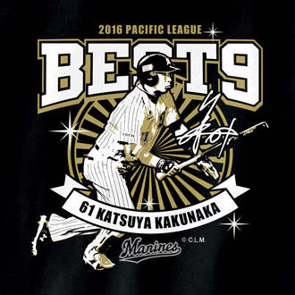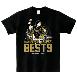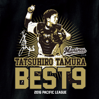 2016年度パ・リーグ ベストナインにマリーンズから、田村選手(捕手部門)、鈴木選手(遊撃手部門)、角中選手(外野手部門)が選出されました。2017年、新年第一弾のグッズ販売として、3選手の受賞を記念した、「2016年ベストナイン記念Tシャツ」をマリーンズオフィシャルオンラインショップ限定で販売します。