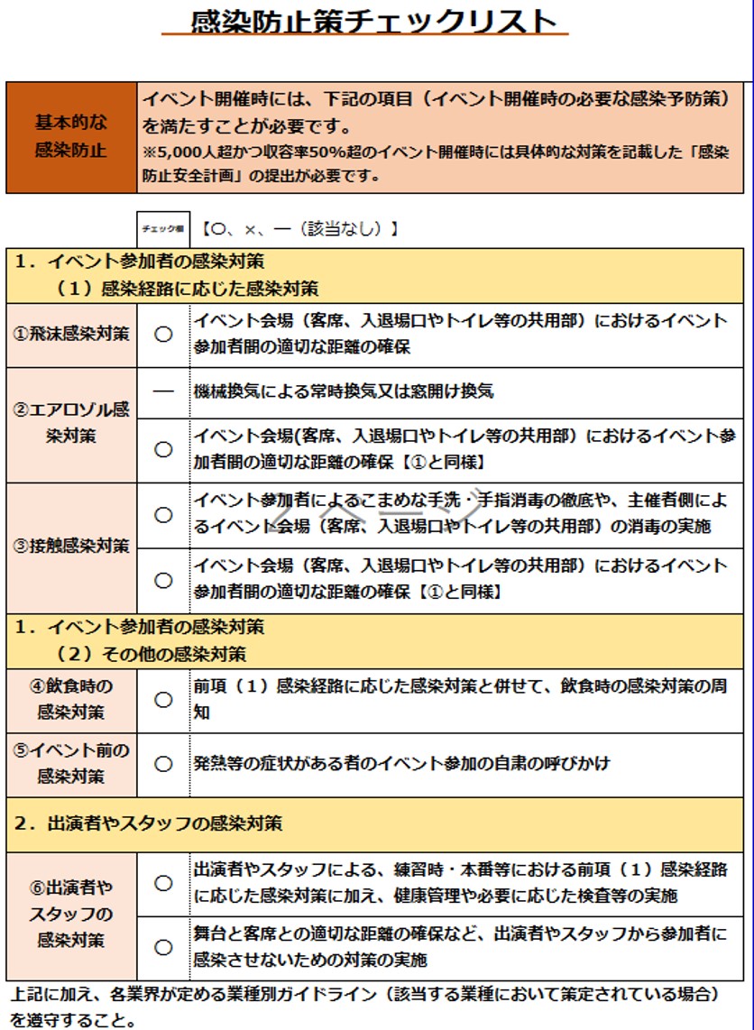 都道府県が定める様式に基づく感染防止策などを記載したチェックリスト