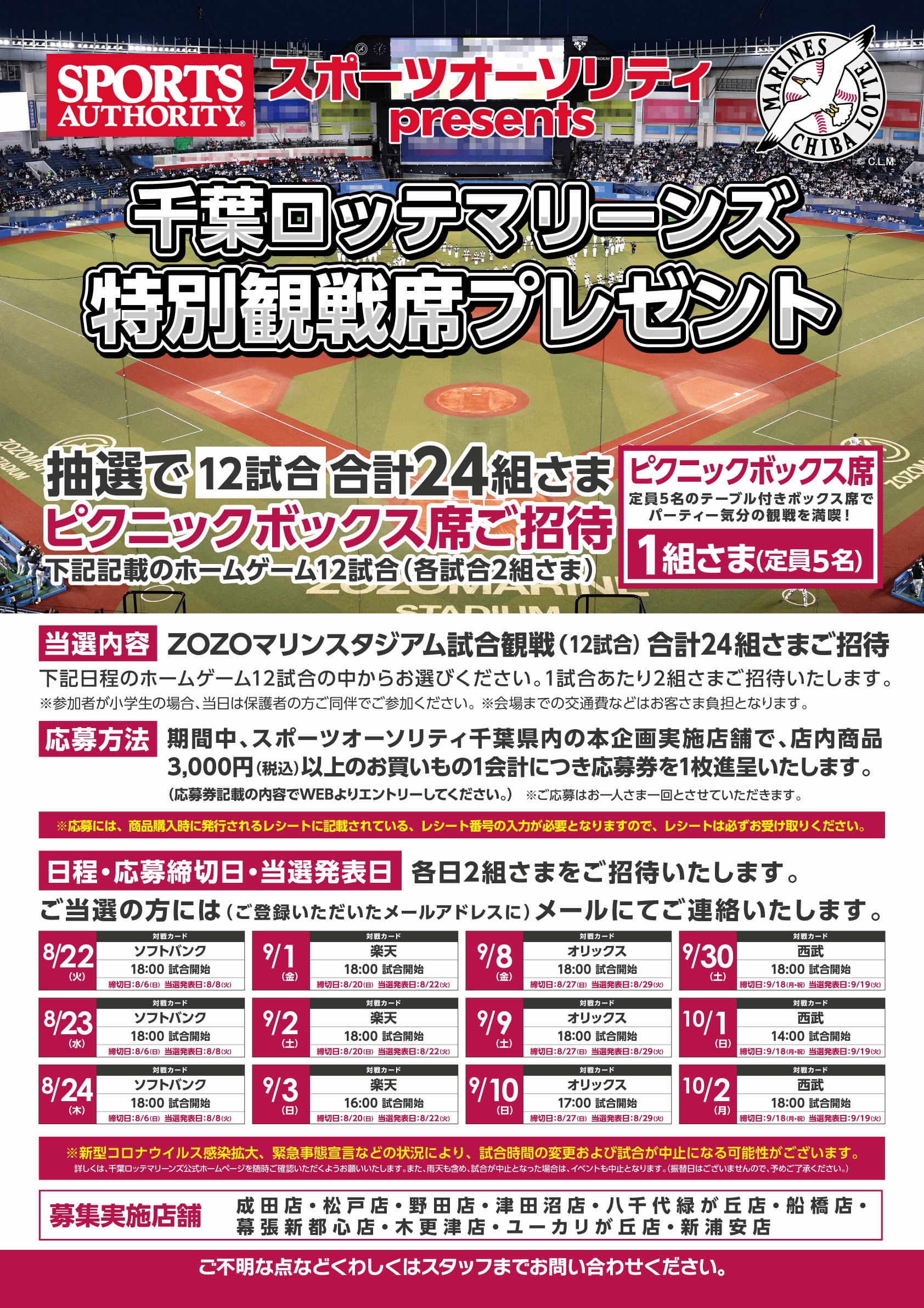マリーンズのオフィシャルスポンサーでもあるスポーツオーソリティでは「特別観戦席チケットプレゼント」キャンペーンを実施中です。