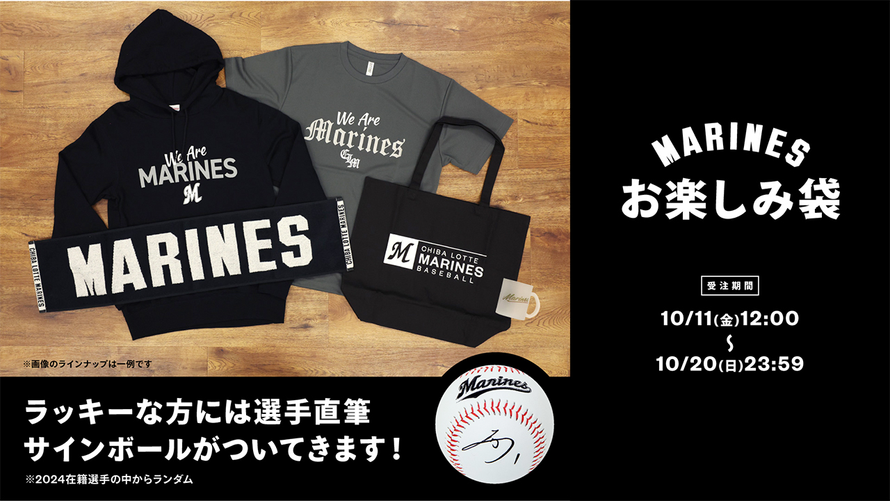 マリーンズオンラインストア限定で10月11日(金)から、マリーンズお楽しみ袋の受注販売を開始します。この機会にぜひお買い求めください。