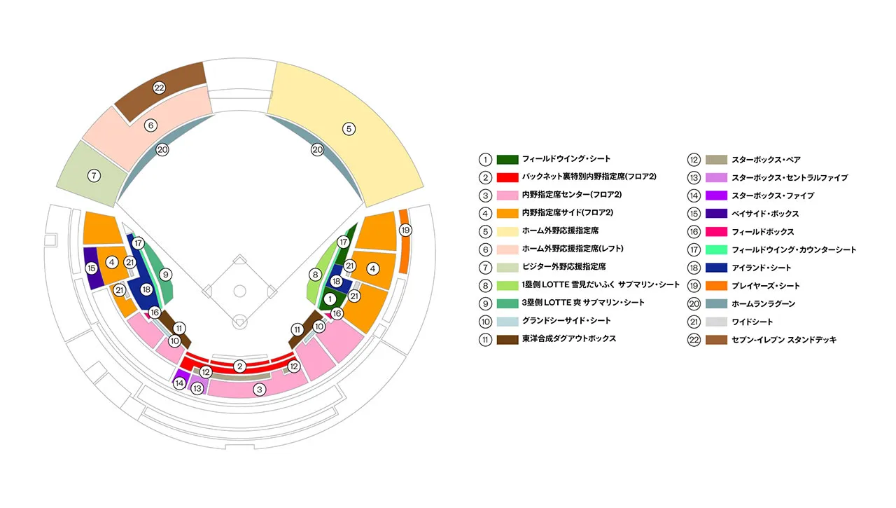 TEAM26ジュニア会員の無料入場対象席種は下記のとおりです。