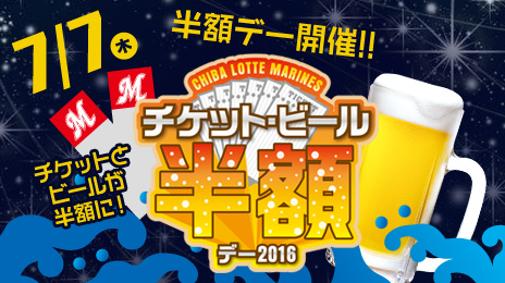 7/7(木)「チケット・ビール半額デー」チケット情報発表