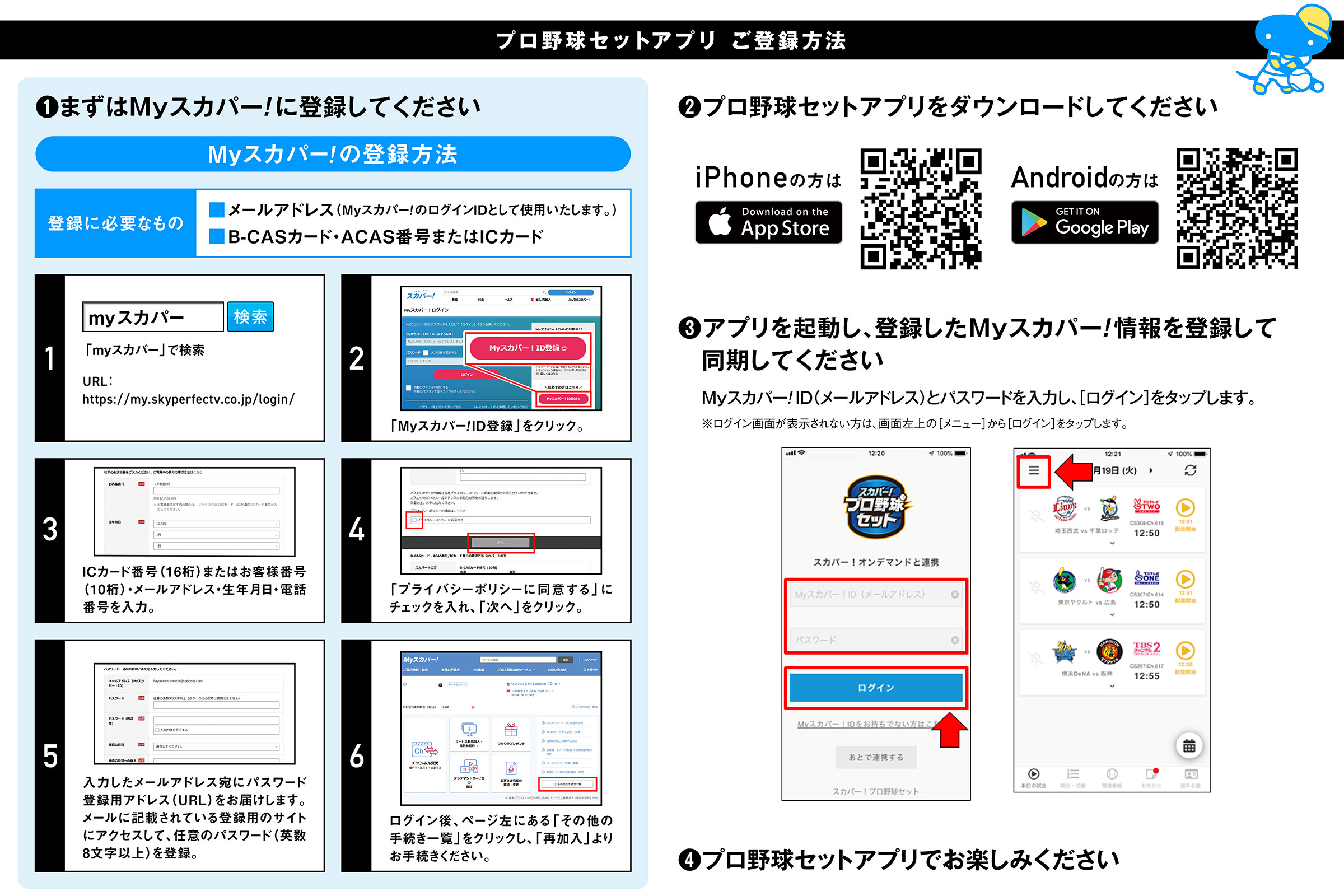 スマホで視聴する場合は「スカパー!プロ野球セットアプリ」がオススメ!試合配信のほかにアプリならではのコンテンツが目白押し!!