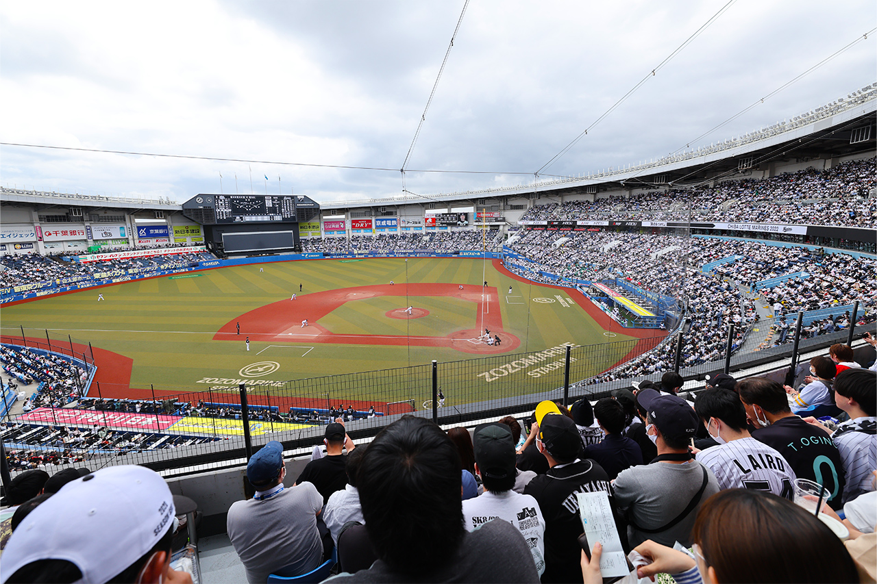 バックネット裏から俯瞰して試合を観戦できる2階席(フロア4)のエリア前方にあるシートです。投球や打球の球筋はもちろん、試合展開で随時変わる守備シフト、イニング間イベント、ZOZOマリン名物の打ち上げ花火も楽しめるお席です。