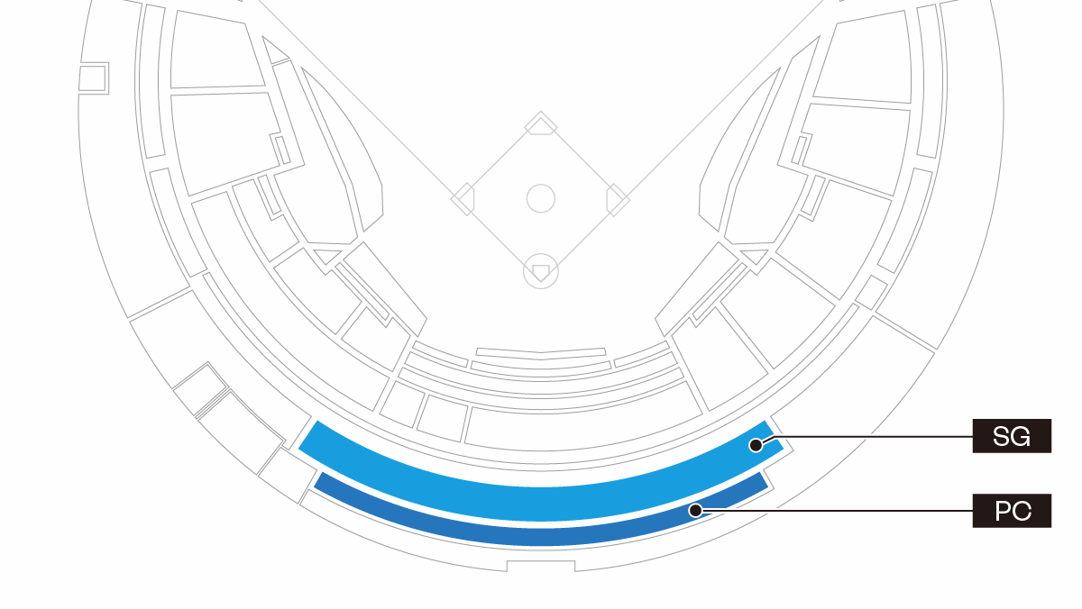 バックネット裏から俯瞰して試合を観戦できる2階席(フロア4)のエリア前方にあるシートです。投球や打球の球筋はもちろん、試合展開で随時変わる守備シフト、イニング間イベント、ZOZOマリン名物の打ち上げ花火も楽しめるお席です。