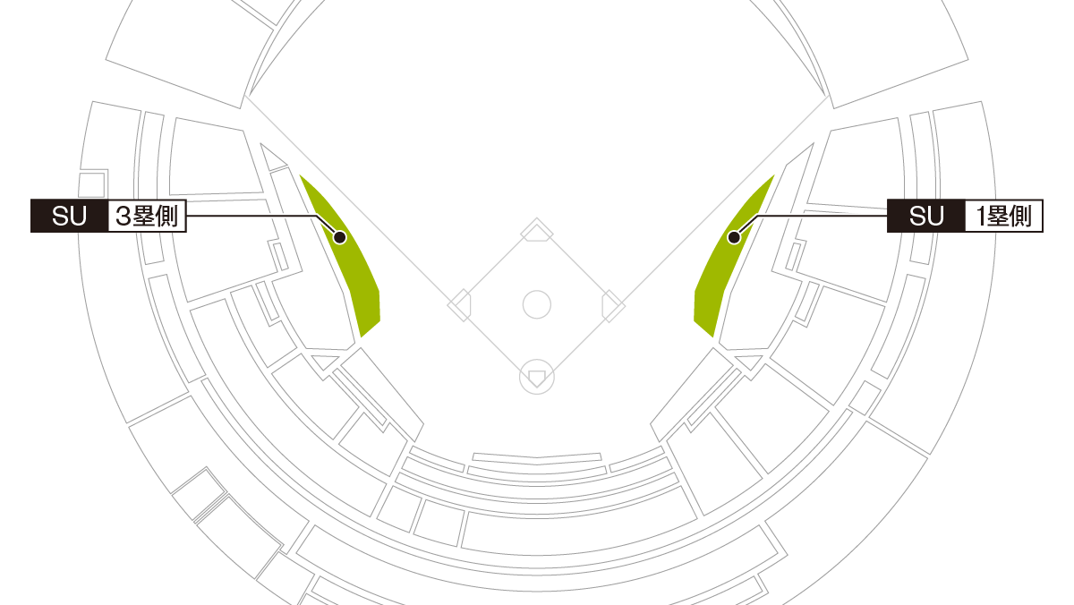 ダグアウトやカメラマン席と同じ並びのグラウンドに位置し、 イニング間のキャッチボールやヒーローインタビューなど選手を 目の前で堪能できる人気エリアです。