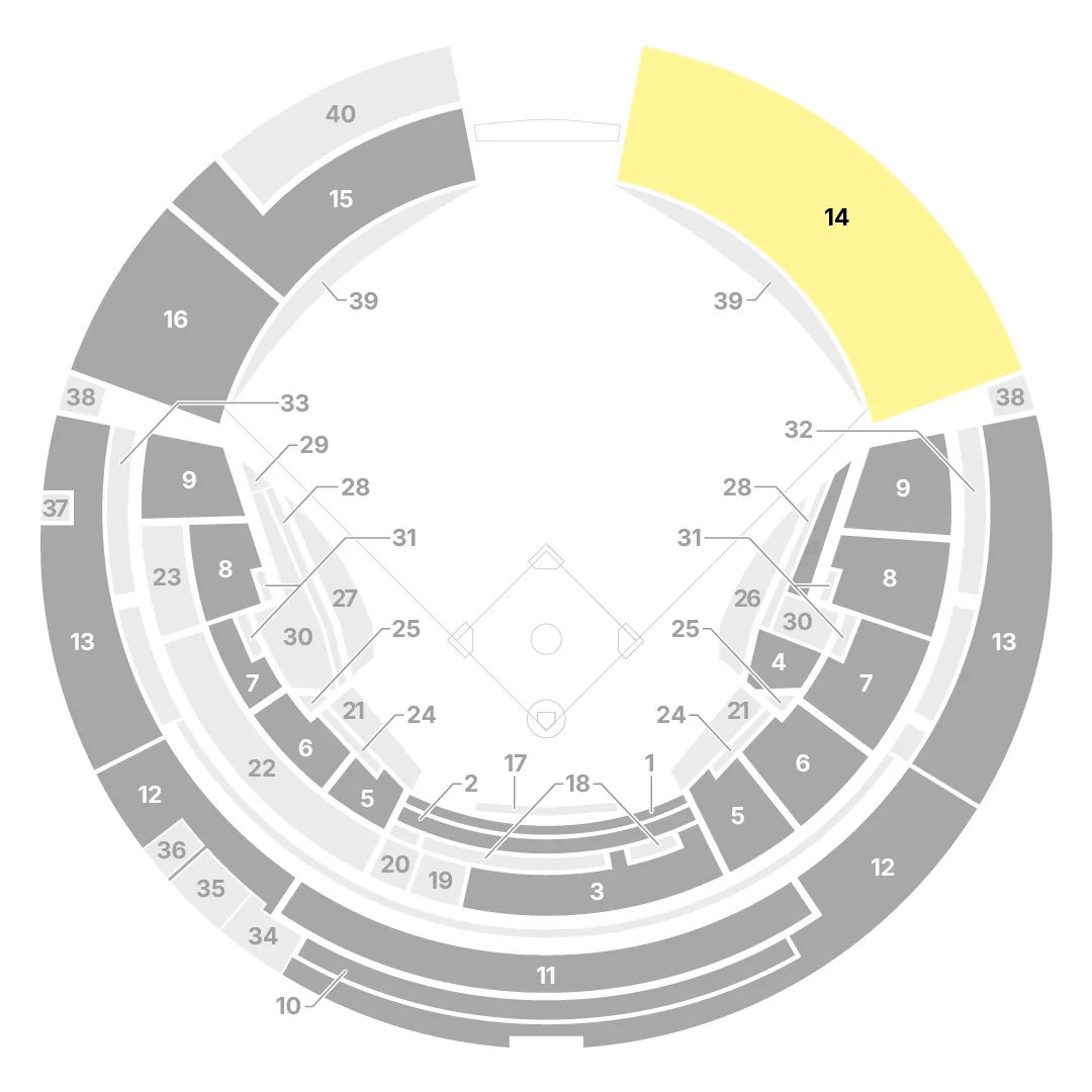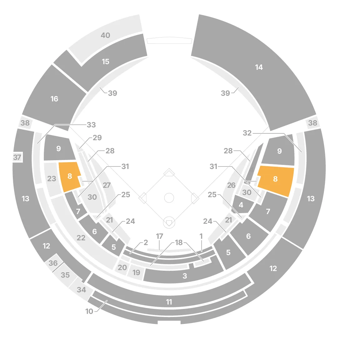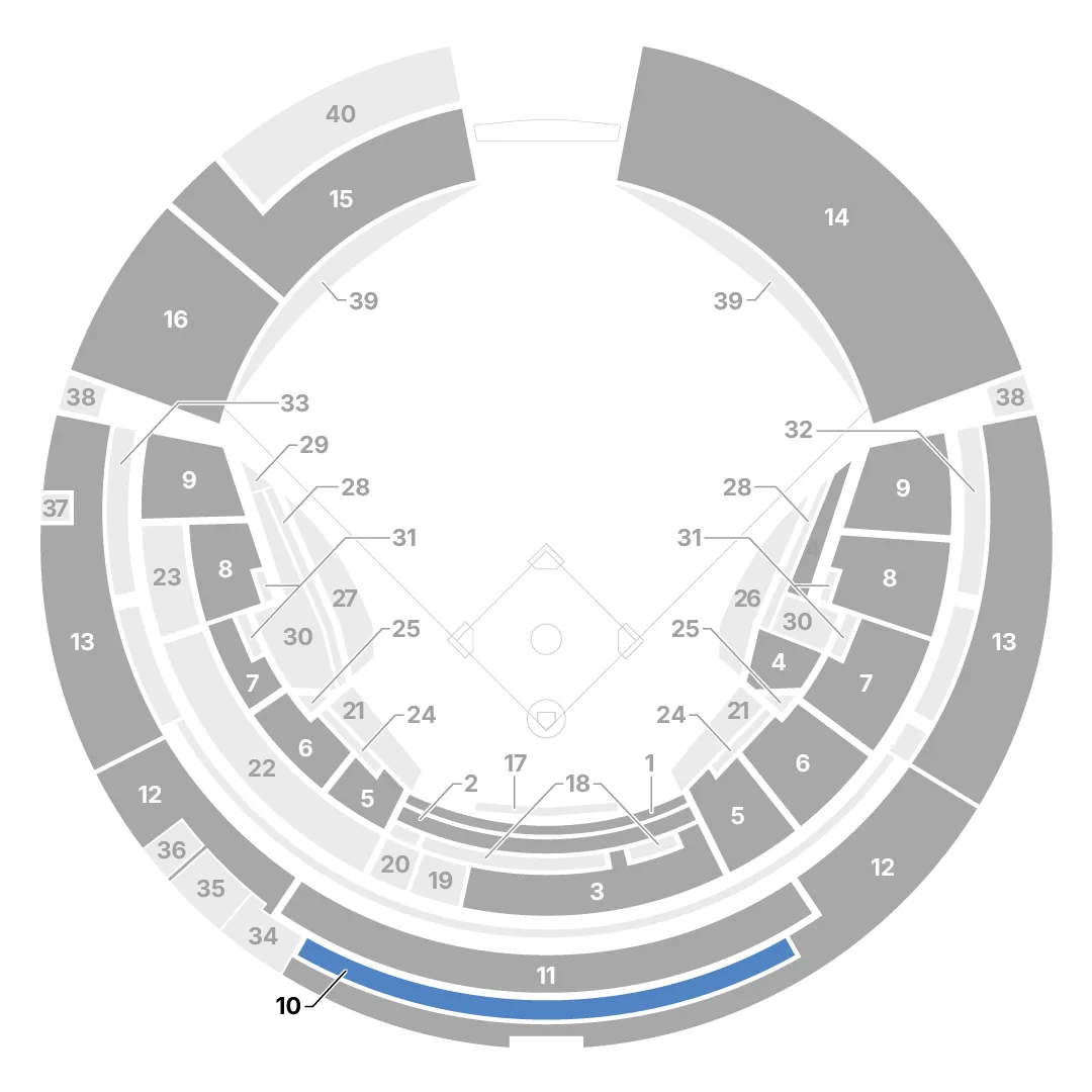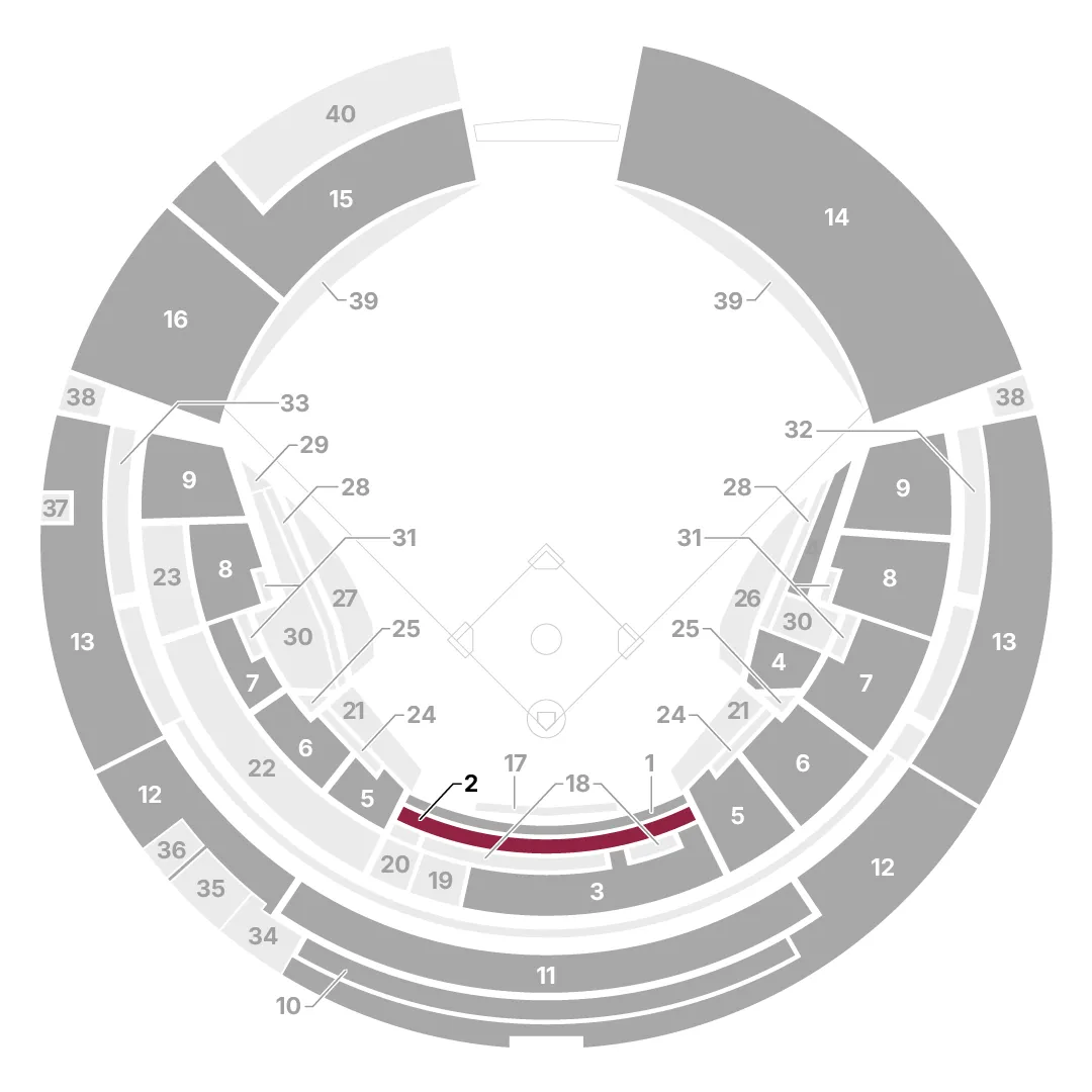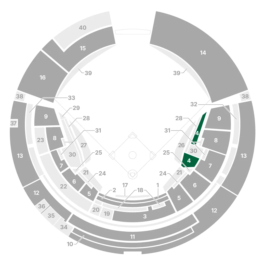 球場とプレーの全体を見渡せるフロア4(2階席)内野指定席