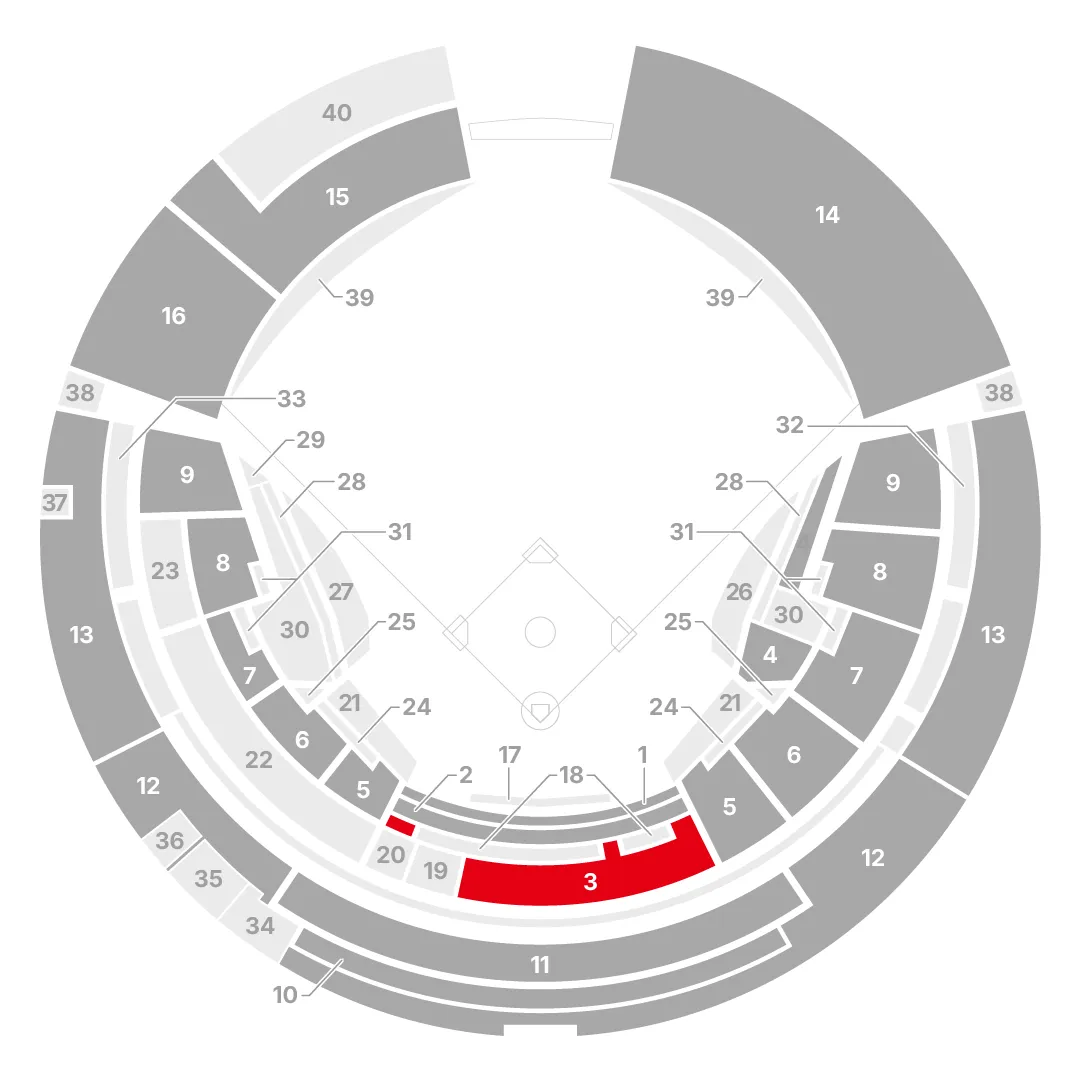 1塁、3塁それぞれのファールグラウンドに向けて"翼"のようにせり出した内野指定席です。グラウンドに近い目線で選手たちのスピードや迫力のプレーを観戦できる人気のエリアです。